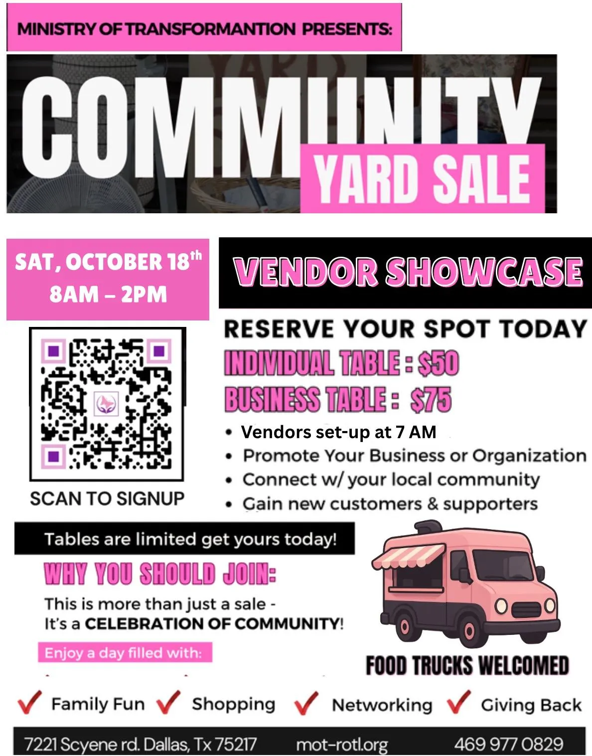 Ministry of Transformation will partner with your school, church, business, or organization to host fundraisers,
